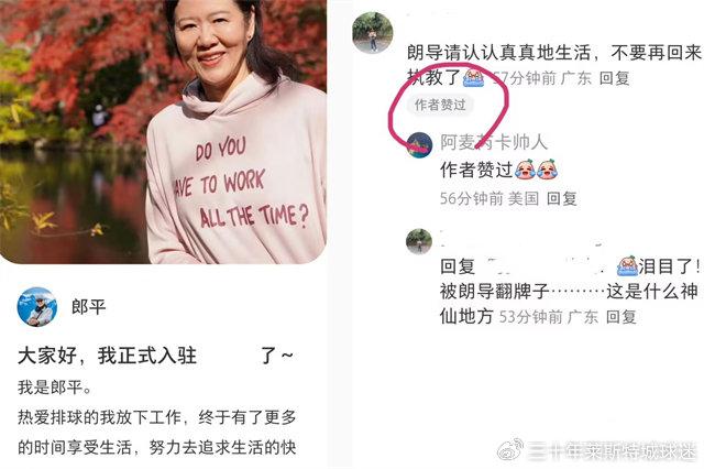 近日,郎平认证并登录了某社媒,她写道:“热爱排球的我放下工作,终于有了更多的时间享受生活,努力去追求生活的快乐。”虽然郎平没直接回复外界呼吁她重新出山执教,但她在一条“郎导请认认真真地生活,不要再回来执教了”的评论下进行了点赞,并且留言本人也晒图证实了。